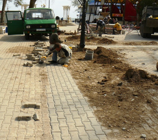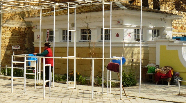 А когда крымский папарацци принес эти фото в редакцию «Крымского аналитика» то тут же получил «выговор с занесением», потому что не смог узнать в пресс-службе евпаторийского горисполкома: сколько погонных метров покрасили, сколько лампочек вкрутили в «уличное освещение», и сколько уложили тротуарных плиток. И вообще, кому нужна стилизованная крепость бара «Грот» с евростеклами и евродверями, и черный черт с отбитыми руками в уголке сказок А.С Пушкина? И уж ни в какие ворота не лезли майки-сувениры с надписью «Ненавижу «Дом 2». - Это, что, по-вашему, крымский сувенир туристам? - Спросил редактор «Крымского аналитика» у крымского папарацци. - Нет, - возразил крымский папарацци, - это Евпатория в апреле 2009 года, накануне открытия курортного сезона, а о количестве вкрученных лампочек и покрашенных погонных метров строители сами напишут в своих отчетах и будьте уверены, цифры у них сойдутся. «Крымский аналитик» решил опубликовать фоторепортаж о подготовке к открытию курортного сезона в Евпатории без погонных метров вырытых траншей и количества вкрученных лампочек. Кстати, майки с надписью «Разыскивается хороший мужик» вы также сможете увидеть на нашем сайте.