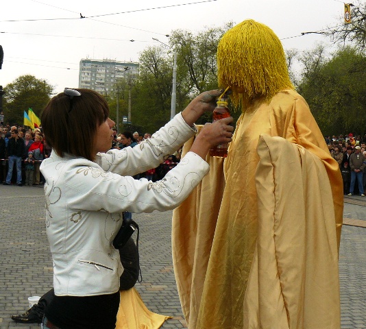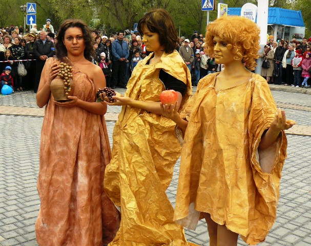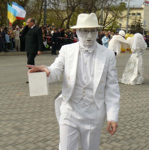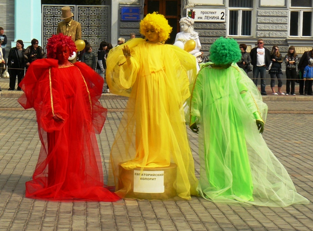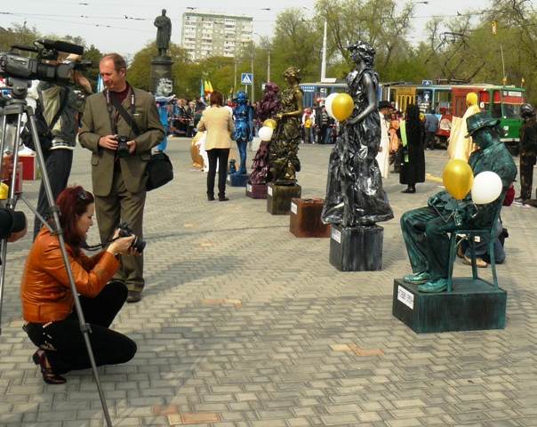 Евпатория 2009Читатели «Крымского аналитика» забросали редакцию вопросами: почему мы не рассказываем о самом главном событии торжественного открытия курортного сезона в Евпатории, О ВТОРОМ ОТКРЫТОМ ЧЕМПИОНАТЕ ЖИВЫХ СКУЛЬПТУР. Признаемся сразу, фотографии с открытия второго чемпионата живых скульптур крымский папарацци доставил в редакцию еще 1 мая 2009 года, но публиковать мы их не рискнули, потому что на этих фото была раскрыта СТРАШНАЯ ТАЙНА ЖИВЫХ СКУЛЬПТУР. Однако после долгих дебатов на повышенных тонах с громкими ударами кулаками в грудь крымского папарацци было принято решение 3 мая 2009 года опубликовать на сайте «Крымский аналитик» то, что так долго скрывали от посторонних глаз организаторы этого всепланетного зрелища. При этом крымский папарацци согласился с требованием редактора «Крымского аналитика», что копирование фотографий и использование их в коммерческих целях посторонним лицам будет КАТЕГОРИЧЕСКИ ЗАПРЕЩЕНО, а предварять сенсационный репортаж станет официальное сообщение пресс-службы Евпаторийского горисполкома. Итак, в документе, посвященном открытию курортного сезона «Евпатория – город солнца и здоровья», текстом которого располагает «Крымский аналитик»,  конкурсу живых скульптур посвящено два абзаца, которые мы публикуем полностью.