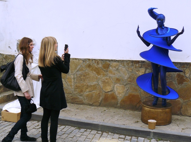Евпатория 2009 Караимская«Крымский аналитик» продолжает свой  фоторепортаж об открытии курортного сезона-2009 в Крыму. 2 мая 2009 года  крымский папарацци внедрился в огромную толпу фотографов и видеооператоров на улице Караимской в Евпатории. Напомним, что открытие курортного сезона в Евпатории праздновали три дня. Итак, 2 мая 2009 года улица Караимская была буквально забита жителями Евпатории, Симферополя, Киева, Львова, Донецка, Днепропетровска, Санкт-Петербурга, Ростова, Минска, Ташкента и солнечного Магадана. Большинство туристов было вооружено фото и видеокамерами, которыми гости Евпатории фотографировали участников второго международного чемпионата живых скульптур. По подсчетам организаторов чемпионата, в Евпаторию приехало 77 живых скульптур из Одессы, Киева, Херсона, Санкт-Петербурга, Москвы, Лондона, Барселоны, Евпатории, Алма-Аты и поселка городского типа Красногвардейское республики Крым. Из этих 77 жюри выбрало лучшие живые скульптуры. В эксклюзивном интервью корреспонденту «Крымского аналитика» директор евпаторийского Центра Досуга Виктор Арихин сообщил, что гран-при и 5 тысяч гривен поделили две живые скульптуры: «Время любить» и «Герцог». Ушлые репортеры тут же все опошлили, объединив две выдающиеся композиции в нечто неблагозвучное: «Время любить Герцога». 1 место в чемпионате было присуждено команде из Крыма, второе – евпаторийцам, третье театру «Стук» из Украины. Кроме этого, специальные призы получили живые скульптуры «Глазунья», «Нерон», а «Белое Танго» завоевало приз зрительских симпатий. Больше всего живых скульптур на улицы города выставили команда Евпатории - свыше тридцати - и семнадцать - команда Крыма.
