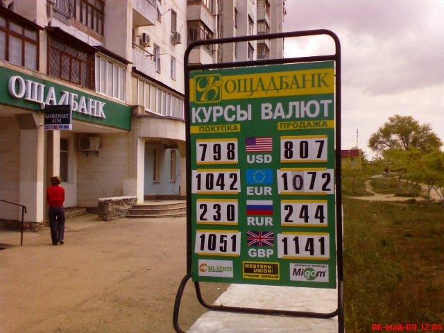 Курс обмена валют на 7 мая 2009 года. Фото мониторинг. Крым. Евпатория |