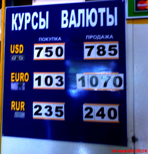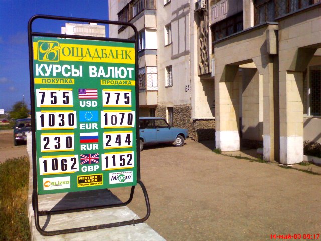 А теперь, о курсе обмена долларов США на гривны 14 мая 2009 года на Украине, в Крыму.