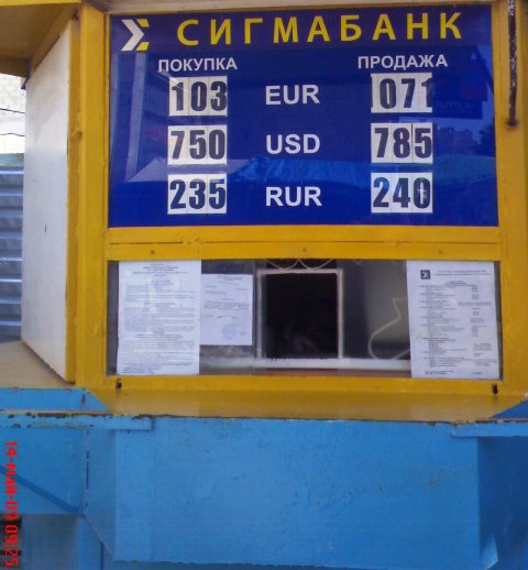 Обмен валюты на Украине. Фото мониторинг курса обмена валют в Крыму. Евпатория 14 мая Печать E-mail