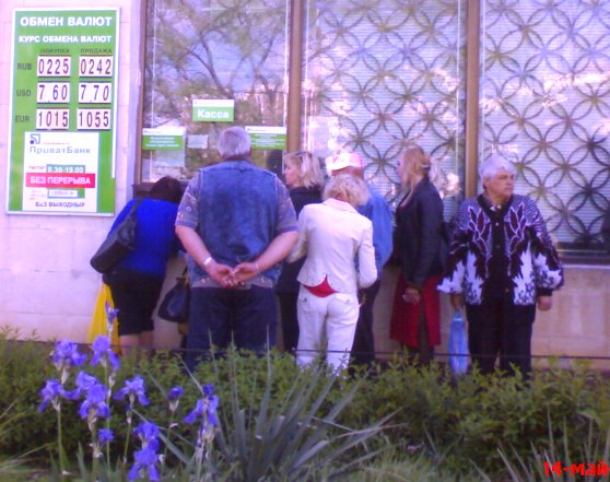Главная arrow Новости arrow Обмен валюты на Украине. Фото мониторинг курса обмена валют в Крыму. Евпатория 14 мая