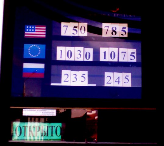 Курс обмена валют«Крымский аналитик», из-за драматических событий на валютном рынке Украины, вынужден был перейти на ежедневный фото мониторинг курса обмена валют в Крыму. Об этом просили нас в своих письмах жители России, которые решили отправиться на отдых в Крым. Главный вопрос, на который нам приходится искать ответы: «С какой валютой ехать в Крым на отдых?».  К сожалению,  мы не знаем реального курса обмена российского рубля на американские доллары и ЕВРО в Москве, Санкт-Петербурге, Новосибирске, Мурманске и Курске, откуда поступили запросы «Крымскому аналитику»,  и не может просчитать все ваши финансовые потери при двойном обмене: российского рубля на доллары США в России, с последующим обменом долларов США на  украинские гривны в Крыму. Поэтому  предлагаем вашему вниманию реальный курс обмена наличной валюты в Крыму на 14 мая 2009 года и бесплатные  СОВЕТЫ ТУРИСТАМ ИЗ РОССИИ. Для того чтобы принять правильное решение вам необходимо просчитать финансовые потери при обмене рублей на доллары США или ЕВРО в России. После чего, используя фото мониторинг «Крымского аналитика», просчитайте, сколько гривен вы получите при обмене в Крыму  ста долларов США и какую сумму вы могли бы получить при обмене  российских рублей, за которые были куплены в России эти сто долларов. (Надо учитывать реальный курс обмена наличной валюты в обменных пунктах валюты или коммерческих банках России).