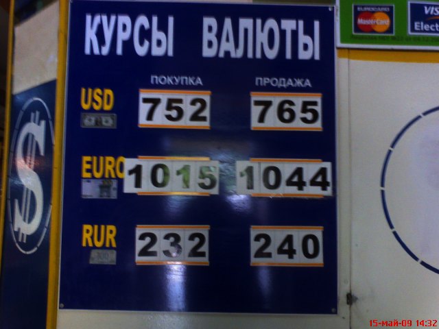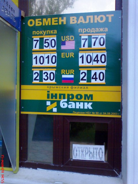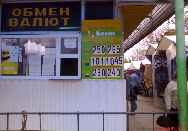 Курс доллара на Украине. Фото мониторинг курса обмена валют 15 мая 2009 года. Евпатория. Крым |