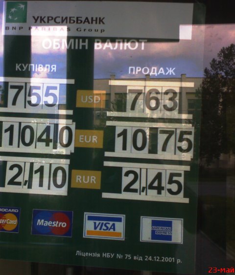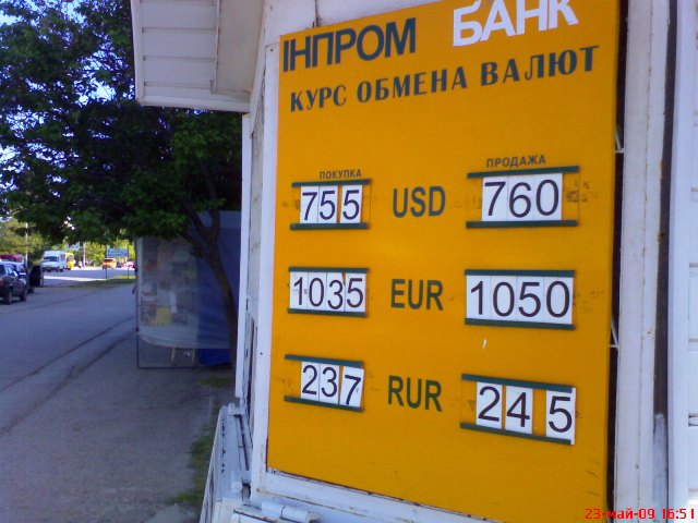 Главная arrow Новости arrow Курс обмена валют с 23 по 25 мая 2009 года. Украина. Крым. Евпатория. Фото мониторинг