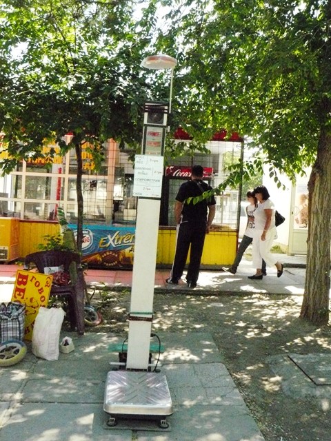 И чтобы не вводить граждан России и Беларуси в заблуждение, редактор вызвал к себе крымского папарацци и отправил его в курортную зону Евпатории фотографировать достопримечательности и ценники на магазинах, в кафе и ресторанах. Крымский папарацци взял под козырек и первым сфотографировал на улице Фрунзе у стадиона «Авангард» мудреный говорящий прибор, который не только определяет вес, рост и объем легких за каких-то две гривны, но еще и дает разные советы, типа: «Вторая сойдите с весов», «Вам надо похудеть», «Да с вашей рожей…».
