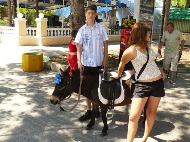 Причем на этих чудо весах позировал крымскому папарацци не какой-нибудь рекламный агент предприятия «японо-мать», а ЕГО ВЕЛИЧЕСТВО ЕВПАТОРИЕЦ. Причем абсолютно бесплатно.  Никаких проблем не было у крымского папарацци и во время съемок точно такого же агрегата на набережной имени Горького.  Мало того, ему удалось сфотографировать и силиконового истукана, которого за те же деньги можно и кулаком по лицу. Да и лошади-пони не возражали.