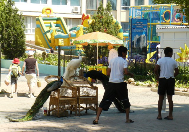 Проблема у крымского папарацци возникла только с павлинами и их перьями, которые торговали «неописуемой красотой» у входа в бывшую общекурортную водолечебницу.