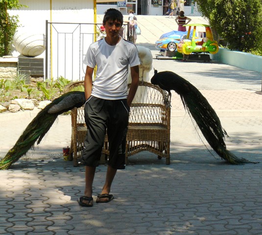 Но и у главного не оказалось не только документа, дающего права на фото цензуру в независимой Украине, но и вообще каких-либо разрешений на этот павлиний аттракцион. Ни патента, ни разрешений от ветеринаров, ни оплаты за место под солнцем. Но, как мы полагаем, сидел, начальник павлинов на набережной имени Горького не просто так, а под чьей – то «крышей». Поэтому, обнаглев до крайности, он стал интересоваться у крымского папарацци: «А ты кто такой?». И тут, крымский папарацци не выдержал и соврал первый раз в жизни: «Я – русо-туристо, облико-морали!».