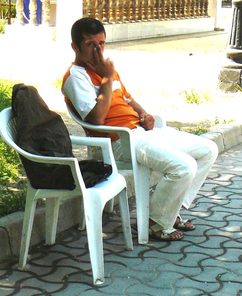 И тут, крымский папарацци применил запрещенный прием и стал требовать с вымогателя документ с печатью, в котором написано, что он должен что – то удалять из памяти своего фотоаппарата. Начинающему рэкетиру крыть было нечем и он, несколько поумерив свой пыл, послал крымского папарацци к главному, сидевшему тут же на стуле.