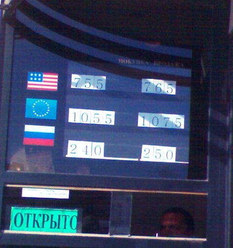 Прогнозы «Крымского аналитика» на май месяц 2009 года полностью оправдались. В Крыму продолжает укрепляться российский рубль, а доллар последнее время демонстрирует потери собственной значимости. Поэтому бесплатные советы «Крымского аналитика» туристам попали точно в цель. Выиграли те, кто регулярно изучал фото мониторинг курса обмена наличной валюты на сайте www.agatov.com и прислушивался к нашим советам. В мае 2009 года выгоднее было привозить с собой в Крым из России рубли, а не доллары США. Эта тенденция сохранилась и сегодня. В пунктах обмена наличной валюты 1 июня 2009 года 1000 рублей России меняли на 235 – 243 гривны, а продавали населению эту же сотню за 248 – 250 гривен. За сто долларов США 1 июня 2009 года в пунктах обмена валют Евпатории платили туристам 755 – 760 гривен, а продавали эту же сотню баксов клиентам за 765 – 770 гривен. Остальные показатели фото мониторинга курса обмена наличной валюты в Крыму смотрите на прилагаемых фотографиях. И по традиции, информация из Киева об официальном курсе гривны к основным иностранным валютам. На 2 июня Национальный банк Украины установил следующий официальный курс гривны. 100 долларов США = 761.0500. 100 евро = 1082.2131. 10 рублей России = 2.4754. (Офіційний курс гривні щодо іноземних валют 02.06.2009 100 доларів США = 761.0500. 100 євро = 1082.2131. 10 рублів Росії = 2. 4754).