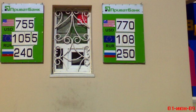 Курс обмена валют на 2 июня 2009. Фото. Мониторинг. Евпатория. Крым. Украина |