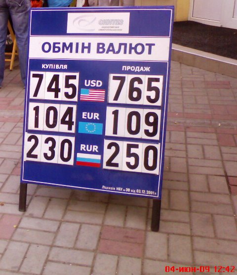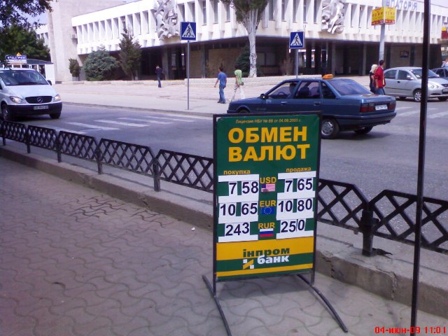 Аналитика. Курс обмена валют 3 июня 2009. Украина. Крым. Евпатория. Фото мониторинг
