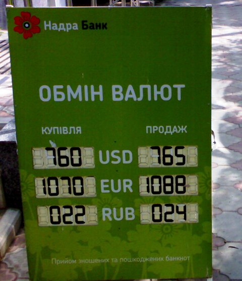 Главная arrow Новости arrow Курс обмена валют 5 июня 2009. Украина. Крым. Симферополь - Евпатория. Фото мониторинг