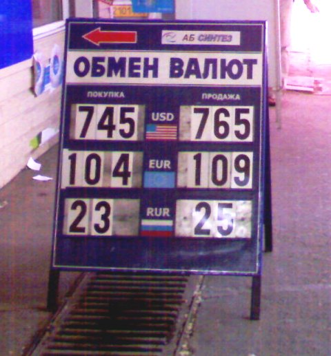 Курс обмена валют в Симферополе в районе ЖД вокзала 4 июня 2009 г.