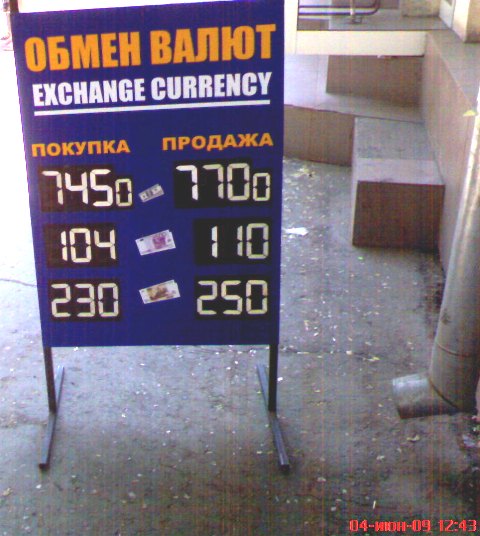 Курс обмена валют 5 июня 2009. Украина. Крым. Симферополь - Евпатория. Фото мониторинг Печать E-mail