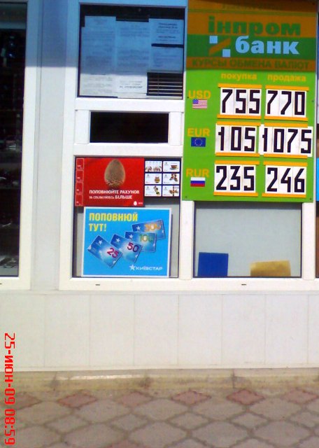 Фото. Отдых в Крыму-2009. Курс обмена валют 25 июня. Евпатория. Фото мониторинг |