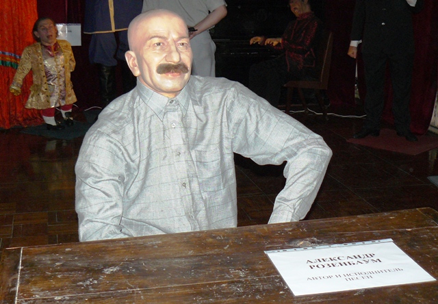 Александр РозенбаумСенсация. В Евпаторию приехала Мария Тюссо. Эта дама известна на весь мир тем, что придумала и создала музей восковых фигур. Вначале в этом музее собирались знаменитости: короли, цари, политики, известные артисты, потом к ним добавились разного рода уроды и бандиты. Сегодня человеческое зло олицетворяет в музее восковых фигур международный террорист №1 Усама бен Ладан. Но что такое Усама бен Ладан по сравнению с самой мадам Тюссо. Хотите ее увидеть? Нет проблем. Приходите в Евпаторийский краеведческий музей и обязательно встретитесь с Марией Тюссо. И не только с мадам Тюссо. Вместе с ней в Евпаторию приехали знаменитые актеры  Жан Поль Бельмондо, Жерар Депардье, Александр Розенбаум, Наоми Кэмпбелл, царь Иван Грозный, принцесса Диана, президент Буш, Гарри Поттер. Два музейных зала  на лето оккупировали 35 знаменитостей из Санкт-Петербургского музея восковых фигур. Чтобы посмотреть на них и сфотографироваться на память с актерами Жан-Поль Бельмондо, Жерар Депардье, Александром Розенбаумом и никому уже не интересным, бывшим президентом США Бушем младшим надо заплатить на входе 30 гривен. Школьникам, пенсионерам и студентам скидка. Так, что спешите видеть, господа! По крымским меркам – это недорого.