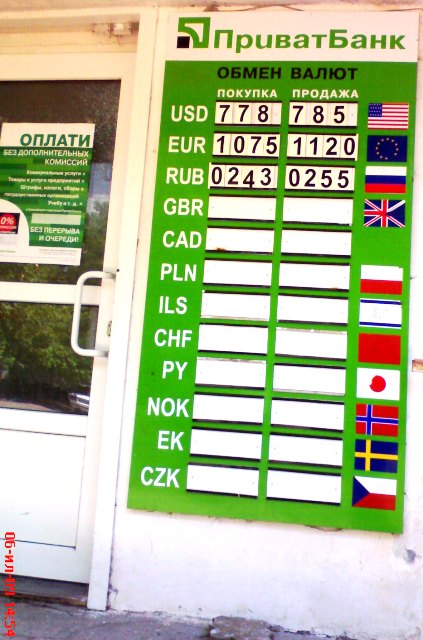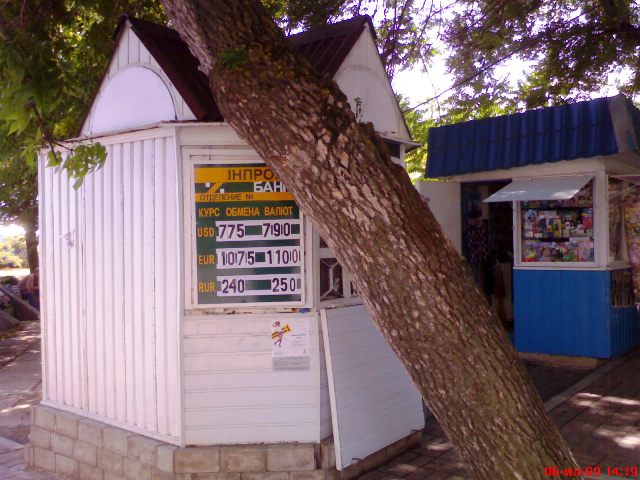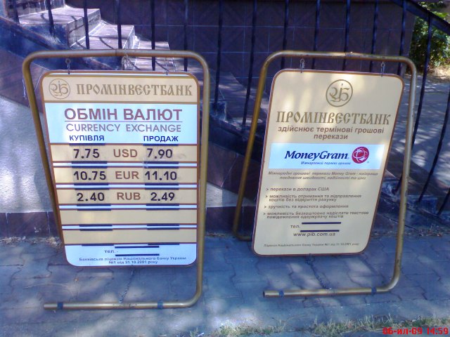 6 июля 2009. Курс обмена долларов США, ЕВРО, рубля России в Крыму. Фото мониторинг. Евпатория