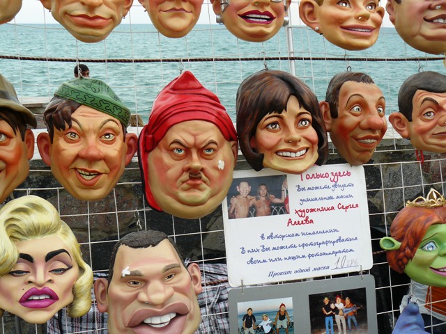 А теперь я обращаюсь к туристам из России и республики Беларусь. Приезжайте в Крым. Здесь теплое море, жаркий пляж, шашлыки на набережной имени Валентины Терешковой, а главное - здесь есть на что посмотреть. Ну, где вы еще увидите  стопроцентный кич с дыркой вместо головы или маску ЮЛИИ ТИМОШЕНКО с пустыми голубыми глазами! Приезжайте сегодня, следующим летом, этого уже не будет, если украинский народ одумается и сбросит со своей шеи «оранжевое ярмо», прославляющее фашизм, предательство и прочие великие ценности киевских и американских  господ.