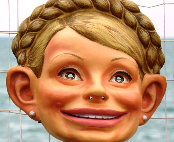 Юлия Тимошенко в ЕвпаторииГоспода туристы и те, кто ждет своей очереди побывать в Крыму и отдохнуть на набережной имени Валентины Терешковой. Для тех, кто не знает, – Валентина Терешкова - первая женщина космонавт в мире. Так вот, специально для любителей ночных кошмаров. Жуткий аттракцион с премьер-министром Украины Юлией Тимошенко. Представьте на секунду: море, закат, крымская жара и повешенная на стене женщина с косой. А в глазах у нее не кровавый мальчик, депутат из БЮТа, которого обвиняют в убийстве, а самое что ни на есть Черное море. А сверху белая фальшивая коса. Ужас! Кошмар! А вам, ЭТО предлагают примерить на себя и совсем НЕ ДАРОМ, а ЗА ДЕСЯТЬ ГРИВЕН. Маленький мальчик визжит на всю набережную: «Не хочу быть Юлей!». И он прав. Зачем ребенку этот кошмар в окружении таких же ужасных и знаменитых, но с пустыми глазами, в которых плещется море. Тогда сунь голову в дырку – предлагают мальчику - и изобрази из себя что-то большое и толстое "с приветом из Крыма". Мальчик отказался, а дама взобралась на коня, и ее сняли за десять гривен… на свой фотоаппарат. Теперь у нее этот искусственный конь останется навсегда в одном флаконе с «приветом из Крыма».