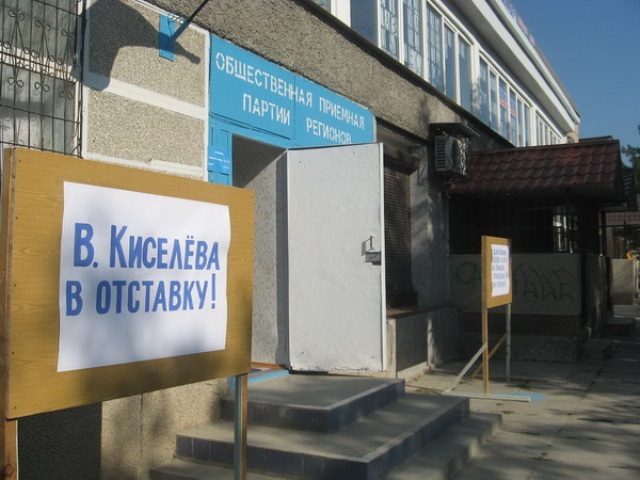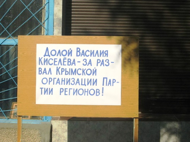 По его словам, прибывшего в Раздольненский район Василия Киселева рядовые партийцы встречали плакатами: «В. Киселева в отставку!» и «Долой Василия Киселева за развал Крымской организации Партии регионов!». Помощник нардепа сумел сорвать первый плакат, а второй (в котором Киселев обвиняется в развале крымской парторганизации) люди отстояли. Вместе с тем, по информации главы райсовета, на организованный Василием Киселевым прием граждан селяне не спешили. Так, до полудня на встречу с «регионалом» пришло лишь около десяти человек. «Нет там никаких массовых движений. Люди к нему не идут», – резюмировал Сергей Акимов.