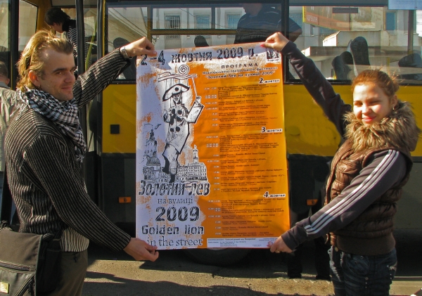 Юрий Теслев ЕвпаторияЛьвов встретил чудной солнечной погодой, а, следовательно, отличным настроением. На привокзальной площади ждал автобус и  радушные организаторы XIX Международного театрального фестиваля "Золотой Лев на улице 2009". Мы легко узнали их по ярко-рыжему плакату с программой фестиваля. Из программы следовало, что красочное шествие  участников фестиваля запланировано лишь на завтра и у нас целый день в запасе, который можно потратить на знакомство с одним из красивейших городов. Однако, повезли нас в… Трускавец! Закрыв глаза, я предался воспоминаниям о том, как десять лет назад отдыхал на этом чудном курорте. Церковь, снятая  под Трускавцом из окна бегущего автобуса. Может, кто-то узнает ее? Помнится, больше всего поразил тогда следующий момент: Евпатория – тоже курорт, но у нас кроме санаториев и домов отдыха  есть крупные заводы, комбинат, развита строительная индустрия…  Там работают люди, которые живут в обычных домах. Трускавец же совершенно своеобразный город. Здесь видишь только дворцы  и  курортников.