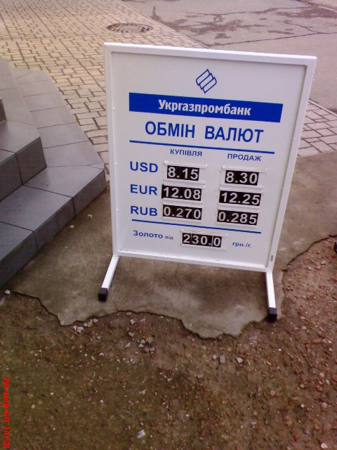 Новости Украины. Киев. Курс обмена валют на 5 ноября 2009 года. Фото мониторинг курса гривны в Крыму. На Украине национальная валюта гривна пострадала от свиного гриппа не меньше чем люди.  Крымский папарацци провел традиционный фото мониторинг курса обмена валют в Симферополе и в обменных пунктах Евпатории. За 100 долларов США в Евпатории 4 ноября 2009 года платили по 818-820 гривен. А продавали те же 100 долларов США клиентам банков в Евпатории по 826-830 гривен. Тысячу рублей России в Евпатории меняли на 265-277 гривны. Продавали 1000 рублей России клиентам банков по 282-285 гривен. 100 ЕВРО покупали у туристов по 1200-1208 гривен, а продавали эти же 100 ЕВРО в пунктах обмена валют Евпатории по 1225-1230 гривен. Явно занижен был курс обмена наличной валюты в пунктах обмена валют в "Симферополе" на ЖД вокзале. Прибывающим туристам из России, Беларуси и стран дальнего зарубежья, за сто долларов США в районе железнодорожного вокзала Симферополя платили 800-810 гривен. 1000 рублей России покупали у туристов за 260-270 гривен. А сто ЕВРО меняли на 1180 - 1200 гривен. В центре Симферополя курс обмена валют был выше. За сто долларов США платили туристам 815-820 гривен, а за тысячу рублей России – 270 гривен.