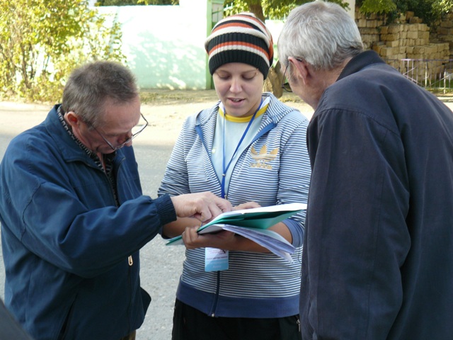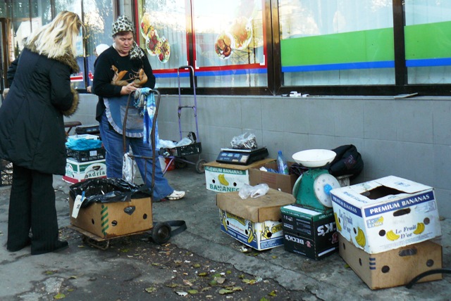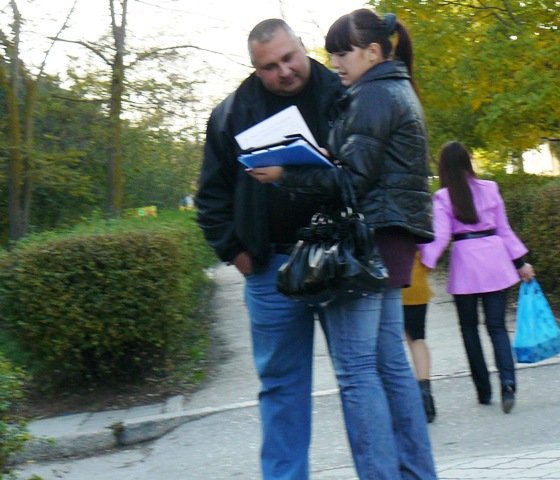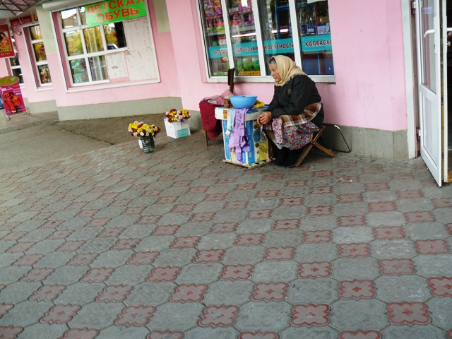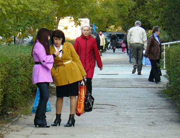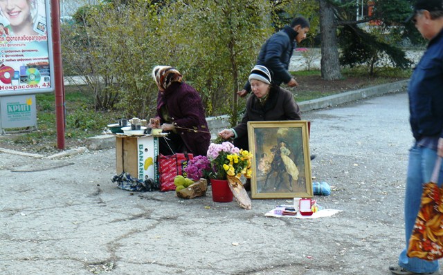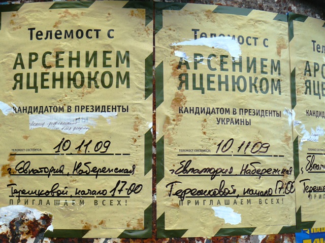 Цветы, картина из прошлой жизни, семечки на перекрестке Фрунзе и Некрасова, а на рекламной тумбе, реклама технического кандидата в вожди. И тут же, в пяти метрах от рекламы, назойливые дамы ведут опрос евпаторийцев. Им хочется  узнать: кто и за кого проголосует в Крыму.