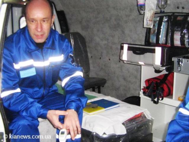 Крым. Евпатория. Глава крымского парламента А. Гриценко передал реанимобиль, медицинское оборудование и школьный инвентарь Евпатории и поселкам Сакского района
