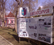 А на Дувановской установили специальный стенд, рассказывающий о 2500-летнем юбилее Евпатории.
