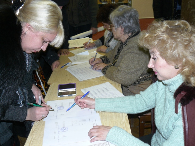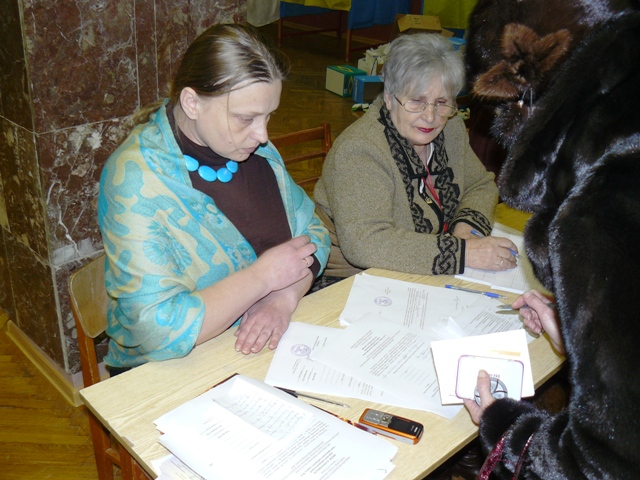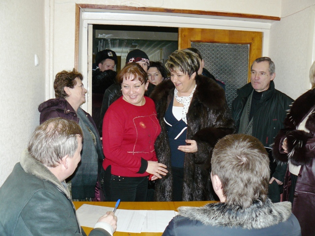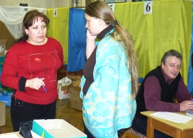А теперь, информация для тех, кто изъявил желание проголосовать на дому. С переносной урной в квартиру избирателя имеют право зайти в квартиру только два члена комиссии. Один из них представляет Тимошенко, второй Януковича. Сопровождающий членов комиссии милиционер остается на улице, и в квартиру к избирателю заходить не имеет права. Никто из прибывших членов комиссии не имеет права агитировать избирателя и заполнять за него избирательный бюллетень.