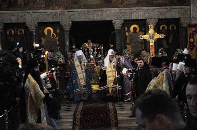 Патриарх Кирилл также подчеркнул важность единства украинского народа на общих духовных принципах, а также единстве восточнославянской духовной цивилизации. Он пожелал украинскому народу мира и благополучия и процитировал на украинском языке слова из молитвы за Украину: "Боже, вэлыкый, едыный, Русь Украину храни".