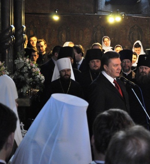 На входження у владу новообраного Президента України Віктора Януковича також благословив Патріарх Московський і всієї Русі Кирил. «Нехай Господь благословить Вас на входження у владу», - сказав патріарх Кирил і подарував Віктору Януковичу образ Спасителя.