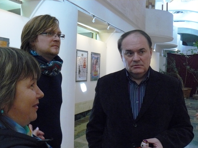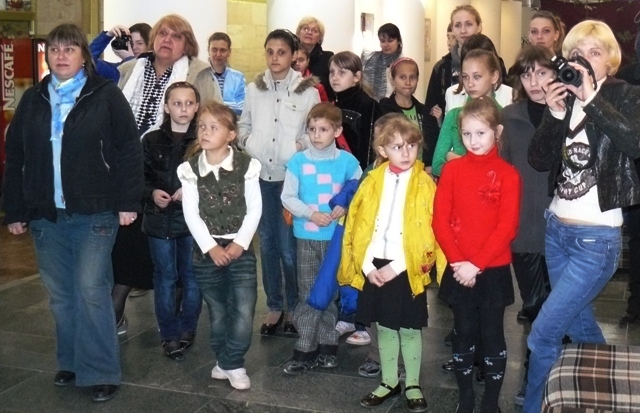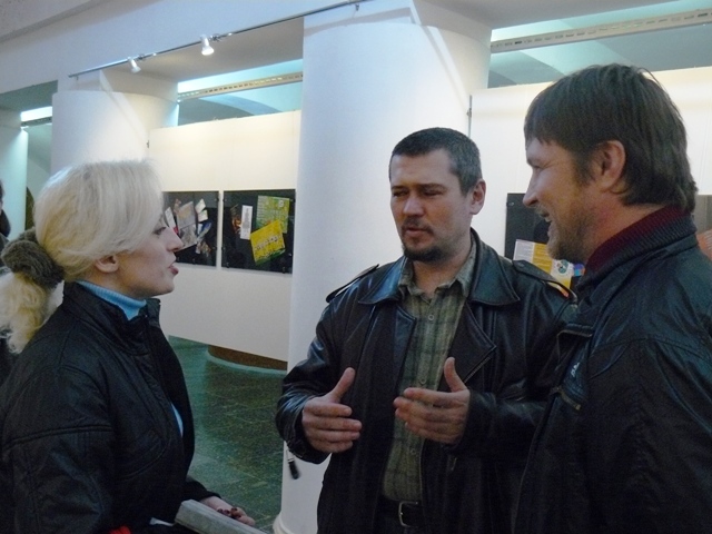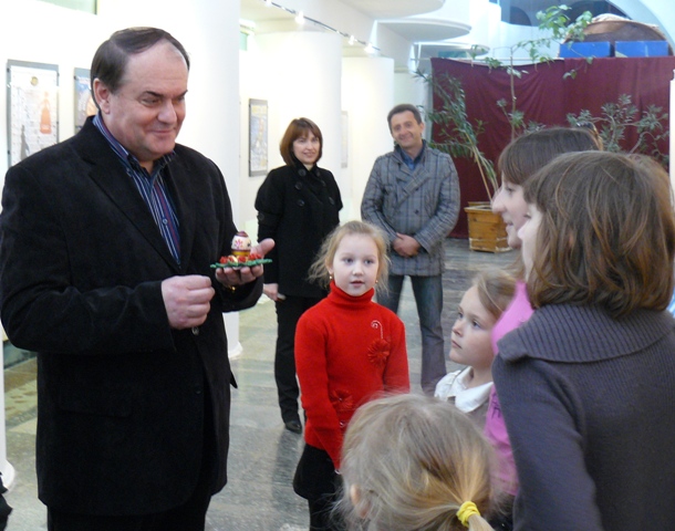 На открытии выставки выступил городской голова Евпатории Андрей Даниленко, который высоко оценил работу детского театра «Золотой ключик», и выразил надежду, что с приходом к власти на Украине нового руководства в Евпатории будет закончено строительство детского театра «Золотой ключик». Фото Марка Агатова