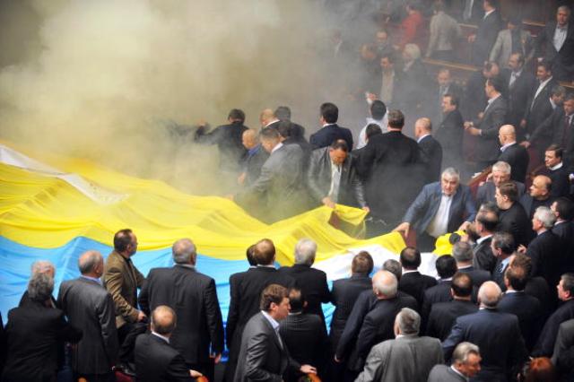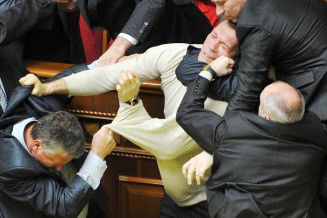 Украина. Киев. Стали известны жуткие подробности преступлений, совершенных народными депутатами Украины, избранными в Верховную Раду по спискам блока Юлии Тимошенко и НУНС. Оказывается для совершения преступления в Верховной Раде Украины «оранжевые» борцы за «незалежность» использовали главный символ страны – ГОСУДАРСТВЕННЫЙ ФЛАГ УКРАИНЫ. Накрыв рабочие места депутатов от БЮТа и НУНС полотнищем государственного флага, народные избранники, как мелкие пакостники, прикрываясь флагом, стали заливать в систему «Рада» супер клей, запихивая туда куски картона. Таким образом, им удалось вывести из строя 200 рабочих мест депутатов. Увидев, чем занимаются «оранжевые» вандалы в парламенте, народные избранники от Партии регионов, бросились на защиту государственной собственности, кулаками изгоняя депутатов-вредителей из зала Верховной Рады Украины. В ответ «оранжевые» подожгли дымовые шашки и забросали своего недавнего соратника по «оранжевому» лагерю, спикера парламента Украины Владимира Литвина куриными яйцами и презервативами с зеленкой. Однако, мордобой в парламенте, дымовые шашки, яйца и презервативы не смогли сорвать судьбоносное голосование. Договор о Черноморском флоте России был ратифицирован и подписан президентами Украины и России, а народными депутатами Украины с яйцами и презервативами теперь занимается прокуратура Украины. Вот, только веры в то, что психически неадекватные граждане с депутатскими корочками в кармане ответят за содеянное, у нас нет. Поэтому «Крымский аналитик», в продолжение темы, решил опубликовать главу из романа Марка Агатова «Журналист-убийца» в которой описано «заседание парламента в сумасшедшем доме».
