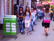Курс обмена валютСпрос на украинские гривны последние дни несколько увеличился, несмотря на то, что туристов из России и стран СНГ в Крым в этом году приезжает меньше, чем  в 2009 году.  Но для начала расскажем об официальном курсе валют, который установил Национальный банк Украины с 21 по 25 мая 2010 года. Национальный банк Украины установил следующий официальный курс гривны Украины по отношению к доллару США, ЕВРО, Рубля России. 100 долларов США = 792.55 гривны Украины. 100 ЕВРО = 990.4497 гривны Украины. 10 рублей России = 2.55 гривны Украины. Курс обмена наличной  валюты в киосках обмена валют в Евпатории и Симферополе. 100 долларов США 21-22 мая покупали у туристов по 785 -792 гривны. Продавали те же 100 долларов США  в тех же обменных пунктах валют по 793-795 гривны. 100 ЕВРО в Евпатории и Симферополе покупают в киосках по обмену валют за 940-980 гривен, а продают по 980-1010 гривен. 1000 рублей России покупают у граждан по 245-254  гривен, а продают клиентам банков по 255-260 гривны. Самый высокий курс обмена иностранных валют на гривны был зафиксирован крымским папарацци в Симферополе на рынке "Светофор". Самый невыгодный курс  обмена валют 22 мая 2010 года был в Симферополе на железнодорожном вокзале и в Евпатории в районе ЖД и авто вокзалов. Подробнее курс обмена наличной валюты в Евпатории и Симферополе смотрите на фото мониторинге "Крымского аналитика".