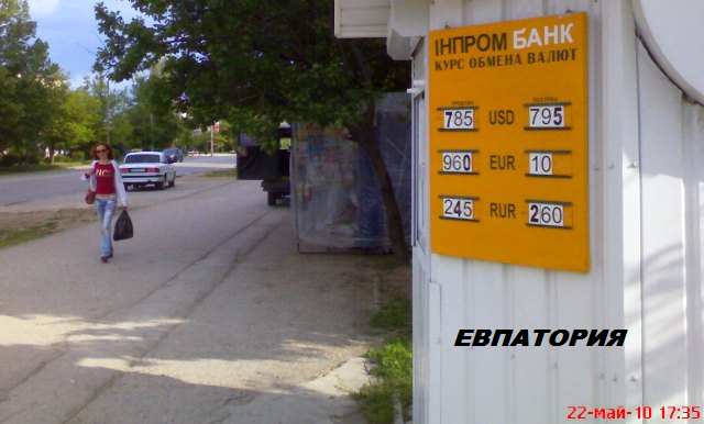 Курс обмена наличной валюты в Симферополе и Евпатории 22 мая 2010 года. Фото мониторинг. Крым Печать E-mail
