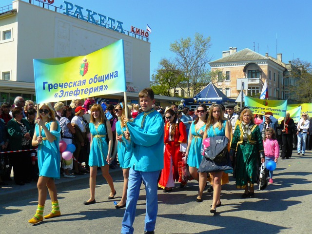 На фото: Греческая община Евпатории на первомайской демонстрации