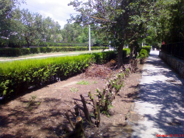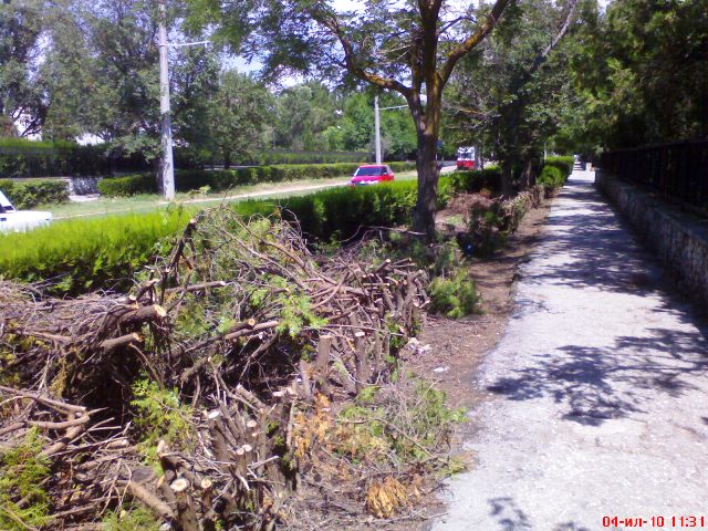 Евпатория авто на газонеПочему люди отправляются на курорты? Что привлекает туристов в Крыму? Море, лечебные грязи, вода минеральных источников? Казалось бы, ответ на поверхности, но никто не поехал бы в Крым, если б здесь его встречала выжженная солнцем пустыня. Поэтому наши далекие предки много труда вложили в озеленение курортных городов. Теперь, когда деревья стали большими, выжженную солнцем степную Евпаторию, с полным правом можно называть курортом. В Советском Союзе Евпатория была Всесоюзным детским курортом, теперь ее называют Всеукраинской здравницей, вот только отношение к главному богатству города - ее зеленым насаждениям с каждым годом становится все хуже и хуже. Крымский папарацци прошелся по курортному району города курорта и увидел то, чего не хотят видеть ни наши «зеленые», которые за «зеленые», ни ГАИ, ни профессиональные защитники природы. Автотуристы и местные автолюбители ставят свои машины прямо на газоны, уничтожая кустарники. Дровосеки, в разгар курортного сезона, в июле,  под корешок вырубили заросли туи вдоль тротуара. Теперь, вместо зеленых кустарников мы видим торчащие из земли голые палки. Крымский папарацци человек, конечно, темный в области озеленения и ботаники, но ему кажется, что обрезкой кустарников и деревьев заниматься надо весной, а не вначале июля. Интересно, а что по этому поводу говорит наука и жители Евпатории?