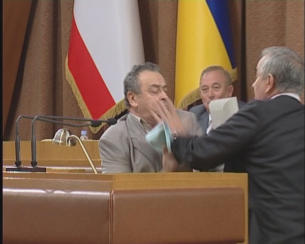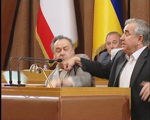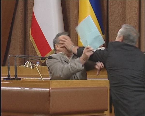 В итоге этой словесной перепалки Вячеслав Захаров подбежал к Ефиму Фиксу и применил силу. Из зала раздались крики: «Позор!». После минутной потасовки депутатов стал разнимать их коллега от фракции «Курултай–Рух» Леонид Пилунский.