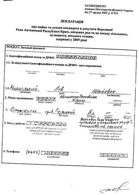 Лев Миримский. Декларация о доходах. Крым. Симферополь. Партия "Союз".