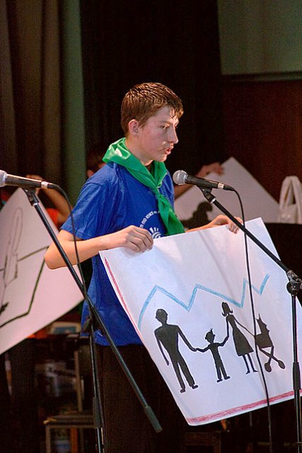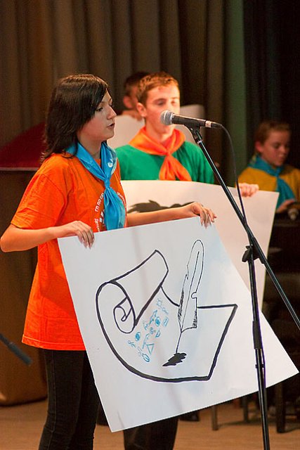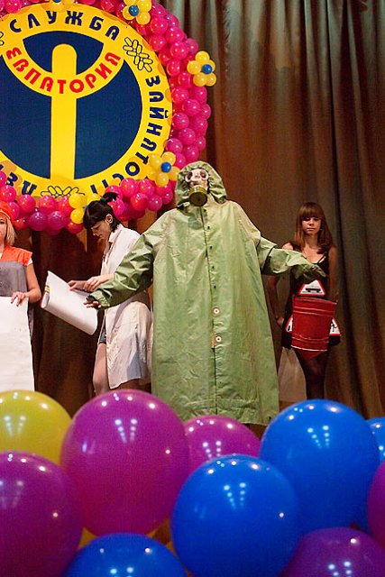 Победителем смотра-конкурса стала агитбригада ЕОШ №13, представлявшая профессию водителя трамвая. Второе место заняла команда школы №11 с профессией горничной, а почетное третье место досталось агентам по организации туристического бизнеса из первой школы. Все участники были награждены дипломами за участие, специальными призами и ценными подарками от спонсоров. В.Собицкая. Фото Е. Покрепы