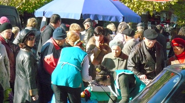 Ярмарка в ЕвпаторииГородские власти Евпатории богатой ярмаркой на проспекте Победы примирили политических оппонентов накануне выборов. Боевые действия в Евпатории отменяются. Потоки вранья и всенародный конкурс обещаний счастливой и долгой жизни после выборов, в Евпатории завершился ярмаркой. Мой давний знакомый караим Виталий, прикупил на ярмарке мешок сахара и пытался протолкнуться  с ним сквозь плотную толпу горожан. А на вопрос: «За кого проголосуешь?». Ответил: «За сладкую жизнь». Трудно было понять, зачем ему мешок сахара, но это его выбор. Крымский папарацци в отличие от тех, кто на ярмарку пришел с мешками, ничего не покупал. Он пытался зафиксировать цены на продукты, но пробиться сквозь огромную толпу оказалось непросто. Создалось впечатление, что на проспекте Победы собрался весь город. И каждый, уходил с ярмарки с увесистыми пакетами, а то и с мешками капусты, картошки, сахара. Ярмарка удалась и это бесспорно заслуга городских властей, которые несмотря на выборы, смогли привлечь фермеров и сельхозпредприятия в Евпаторию. Не лишними оказались на ярмарке и местные самодеятельные коллективы. Народные песни пришлись здесь, как нельзя кстати. А тех, кого интересуют цены на продукты в Евпатории, приглашаем изучить фото отчет крымского папарацци.