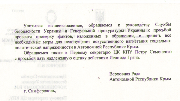 Леонида Грача хотят отправить в СИЗО за призывы к свержению конституционного строя. Крымский парламент обратился к Генпрокурору, главе СБУ и лидеру Компартии Украины провести проверку и дать оценку заявлениям главного коммуниста Крыма Леонида Грача. Депутаты Верховного Совета АРК считают, что в них содержатся призывы к насильственному свержению конституционного строя. Заявление от имени Верховного Совета Крыма с трибуны огласил глава комиссии по вопросам регламента и организационной работы Ефим Фикс, который ранее неоднократно публично упрекал Грача в политической трусости и дешевом популизме. В обращении отмечается, что заявления Грача о фальсификации результатов местных выборов в Крыму в пользу Партии регионов выходят за рамки обычной политической риторики и носят заведомо провокационный характер, подрывая тем самым «основы мира и стабильности в автономии». «Эти клеветнические заявления можно приравнять к заведомо ложным обвинениям в совершении преступления, – говорится в документе. – К тому же, они противоречат выводам международных наблюдателей о том, что выборы в Крыму прошли честно и демократично». Призывы Грача к массовым акциям неповиновения депутаты расценили как действия, направленные на насильственное изменение конституционного строя, что является прямым нарушением закона. В связи с этим парламентарии просят Генпрокуратуру и СБУ провести проверку по изложенным фактам, а лидера КПУ Петра Симоненко – дать оценку действиям Грача. Данное обращение поддержали 75 депутатов.