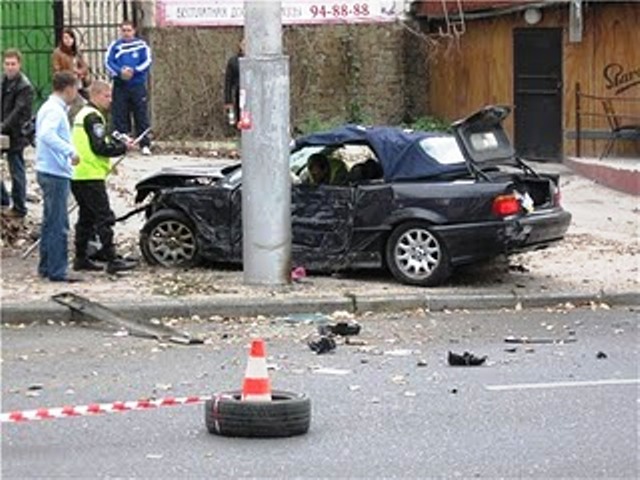 городу. В результате водитель БМВ Владислав Пискун, не справившись с управлением, влетел в столб на тротуаре от которого автомобиль