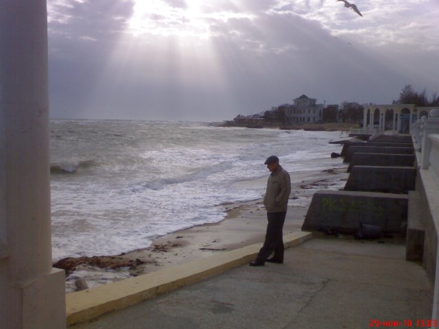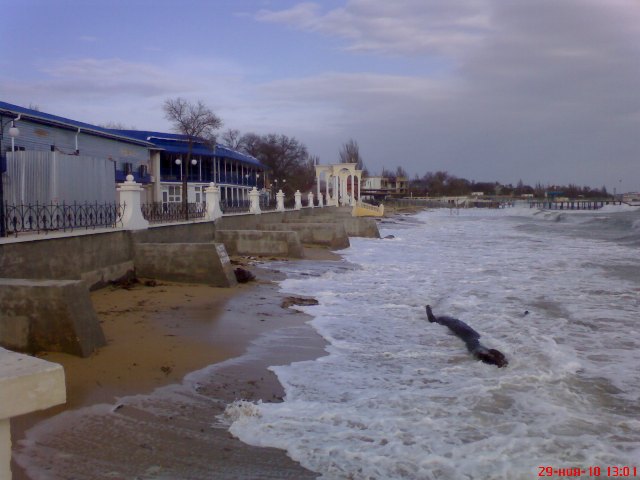 Новости Евпатории специально для читателей «Крымского аналитика» в США, Канаде, Германии, Израиля и Австралии.  Фоторепортаж для тех, кто покинул родной город навсегда. Сегодня в Евпатории ШТОРМОВОЕ ПРЕДУПРЕЖДЕНИЕ! Ветер рвет афиши и валит деревья. Несколько бревен плавает у самого берега в парке имени Фрунзе. Хотел написать на пляже, но вместо узкой полоски песка, кипящая белая пена морского прибоя. Берег ушел в море, соленые морские брызги вместе с пресным дождем и несколько местных жителей на набережной: ПРИШЛИ ПОДЫШАТЬ МОРЕМ! А разговоры у тех, кто пришел: НАДО СПАСАТЬ ПЛЯЖИ ЕВПАТОРИИ! КУДА СМОТРЯТ ГОРОДСКИЕ ВЛАСТИ?! Смотреть можно в разные стороны, но у кого есть рецепт со стопроцентным эффектом? Одни предлагают строить бетонные защитные стенки, другие – снести все, что незаконно возвели на евпаторийских пляжах, а третьи – самые умные специалисты-ученые предлагают ХОЗРАСЧЕТНЫЙ ПРОЕКТ: «ЧЕГО ИЗВОЛИТЕ!». Это когда за ваши деньги научная экспертиза с заранее заданным ответом. Вы хотите построить бетонные буны? Вот, вам научное обоснование и счет для оплаты? Хотите снести постройки на пляже – будет нужный документ. Хотите построить многоэтажки в трех метрах от воды – есть заключение экспертов и на этот случай. И только море во время шторма уносит от берега тысячи тонн песка, не слушая умных слов, и наукообразных заключений экспертов. Так, как спасти пляж в Евпатории? Что мы должны сделать, чтобы Евпатория осталась курортом? Может ответ есть у вас, господа-товарищи из США, КАНАДЫ, ГЕРМАНИИ, ИЗРАИЛЯ И АВСТРАЛИИ? Присылайте – опубликую.