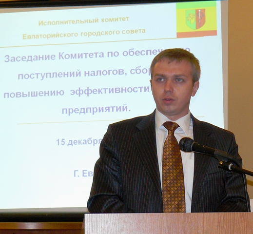Игорь Коробчук ЕвпаторияКрымский папарацци побывал на заседание комитета по обеспечению поступлений налогов и сборов и узнал много нового для себя об экономике Евпатории. В докладе начальника государственной налоговой инспекции города Евпатории Игоря Коробчука было много цифр. Но эти цифры стоят того, чтобы о них узнали жители города. Например, в рамках проводимой операции «Заработная плата без конвертов» проведены 264 проверки, по результатам которых легализировано 338 наемных работников, по которым уплачено в бюджет более 70 тыс. грн.  Этой же теме, уклонению от уплаты налогов с заработной платы работникам, посвятил часть своего выступления и городской голова Евпатории Андрей Даниленко. Он предупредил приглашенных на заседание комитета руководителей предприятий, что подобные фокусы для них могут закончиться весьма печально. Жесткой критике были подвергнуты и руководители санатория «Фемида», которые несвоевременно выплачивают зарплату своим работникам и имеют долги по налогам и сборам. Андрей Даниленко предложил рассмотреть вопрос о смене собственника. Раньше этот санаторий принадлежал военному ведомству, сегодня он находится в ведение судебной администрации. «Крымский аналитик» решил опубликовать тезисы доклада начальника государственной налоговой инспекции города Евпатории,  депутата горсовета  Игоря Коробчука.