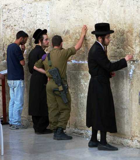 Подход к Стене  разрешен  лишь с покрытой головой, а я  запамятовал.  Мне напомнили и указали на стеклянный   ящик, наполненный кипами или ермолками, как у нас принято говорить.  Взял, значит,   я кипу  и обнаружил на ней печать. Чтобы не воровали, наверное.  Я и не украл. Потом страшно жалел. Вот дурак!  Обычную кипу  везде купить можно, а с печатью Стены Плача…  Так что, если попадете туда, то прихватите и на мою долю лучший сувенир из Израиля.